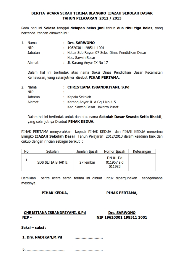 5 contoh berita acara serah terima jabatan uang dan dokumen.