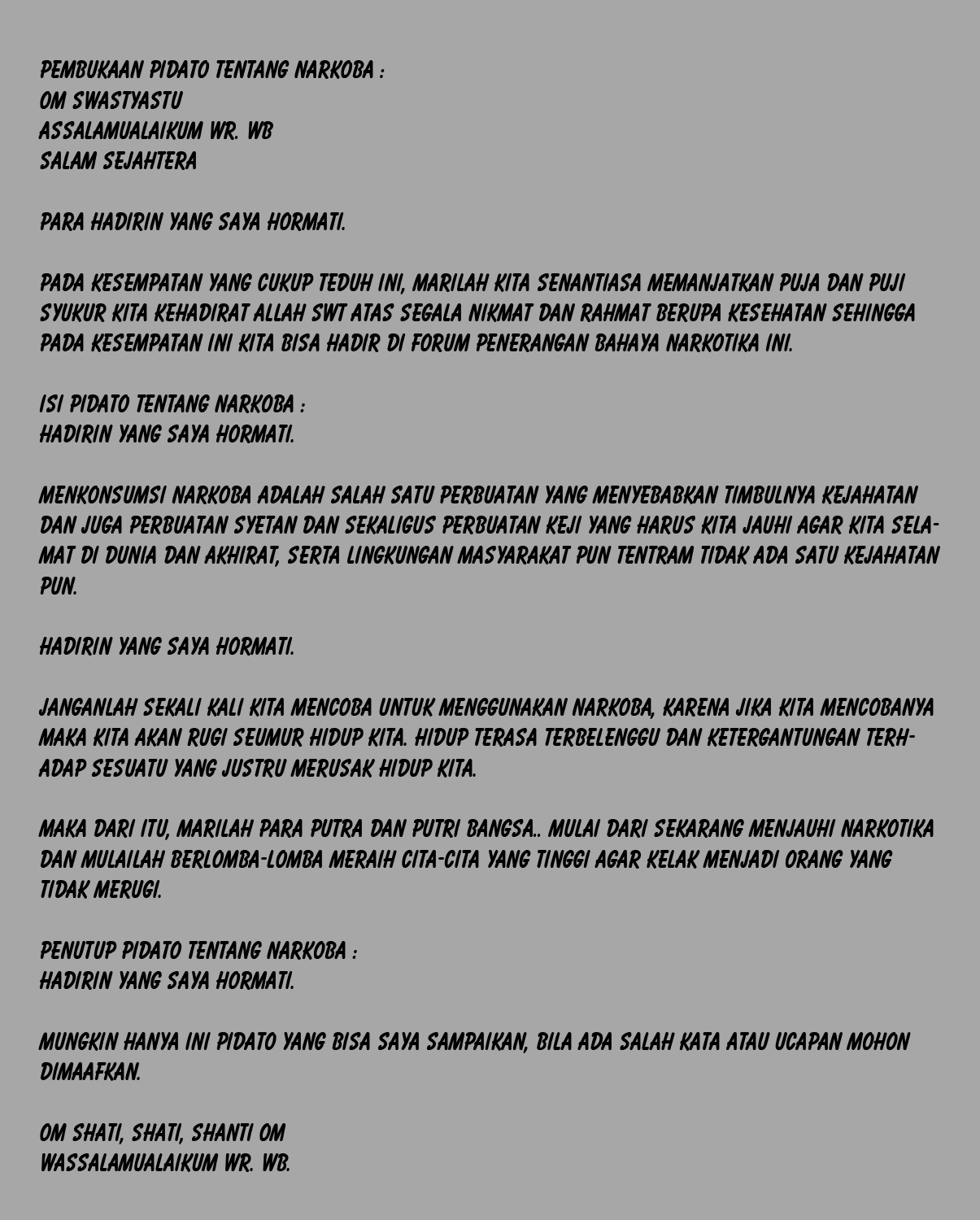 Sebutkan contoh teks ceramah khsuus! Contoh soal menentukan struktur dan ciri kebahasaan pidato persuasif. Sekian beberapa contoh soal teks pidato kelas 9 pilihan ganda beserta jawabannya yang dapat saya bagikan. 40 contoh soal pidato pilihan ganda beserta jawaban kelas 9 soal teks persuasif. Berikut adalah contoh soal tentang pidato persuasif.