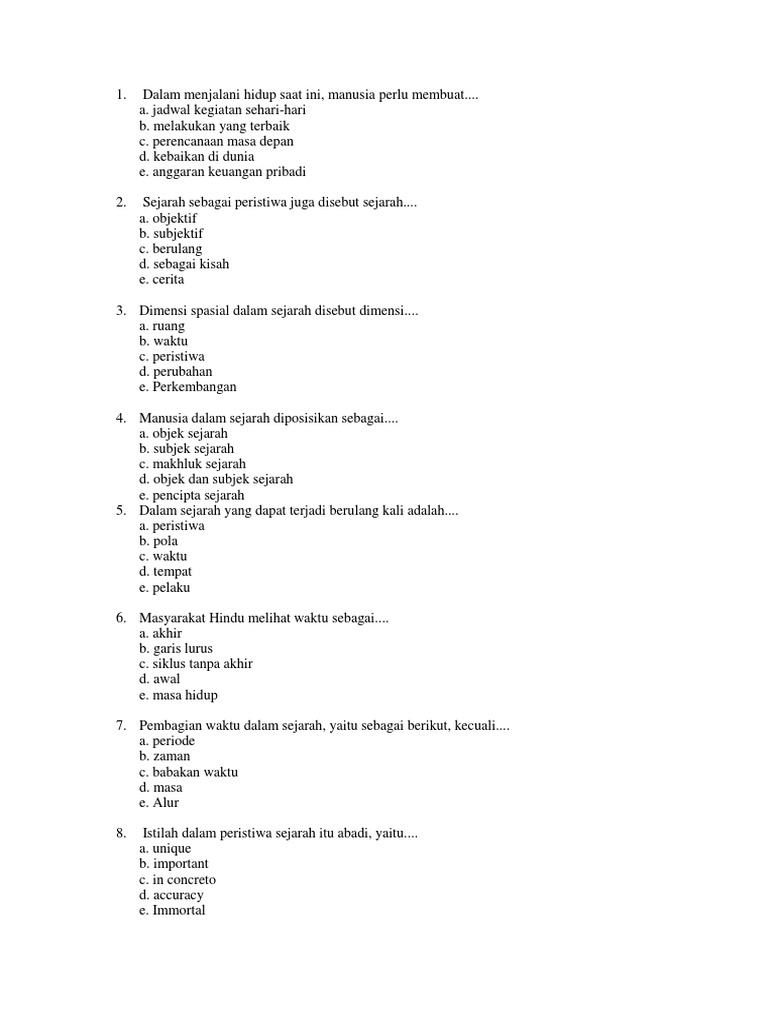 Semua soal sma sejarah (acak) ★ ujian semester 1 sejarah sma kelas 10. Spasial merupakan peristilahan yang kerapkali dipergunakan dalam mengenalkan pengindaraan jauh. Konsep ruang berhubungan dengan lokasi sebuah peristiwa dan kejadian pada saat sejarah terjadi. Sedangkan waktu atau dimensi temporal merupakan konsep penting dalam sejarah karena selalu ada dalam kehidupan manusia dan selalu berjalan secara kontinu. Soal sejarah indonesia kelas 10 bab 1 konsep berpikir sinkronik dan diakronik dalam sejarah + kunci jawabannya ~ sekolahmuonline.com.pembaca sekolahmuonline, berikut ini sekolahmuonline sajikan contoh soal lengkap dengan kunci jawaban dan pembahasannya mata pelajaran sejarah indonesia kelas 10 bab 1 yang membahas tentang konsep berpikir sinkronik.
