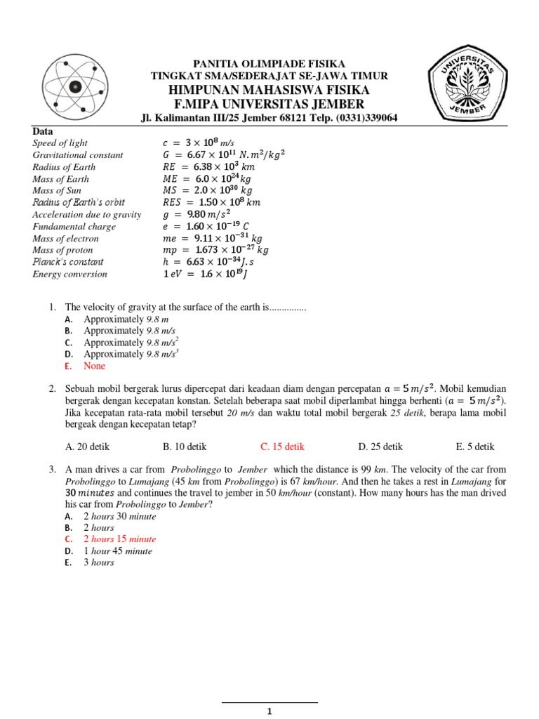Soal Olimpiade Fisika Tingkat SMA SeJawa Timur PDF From scribd.com