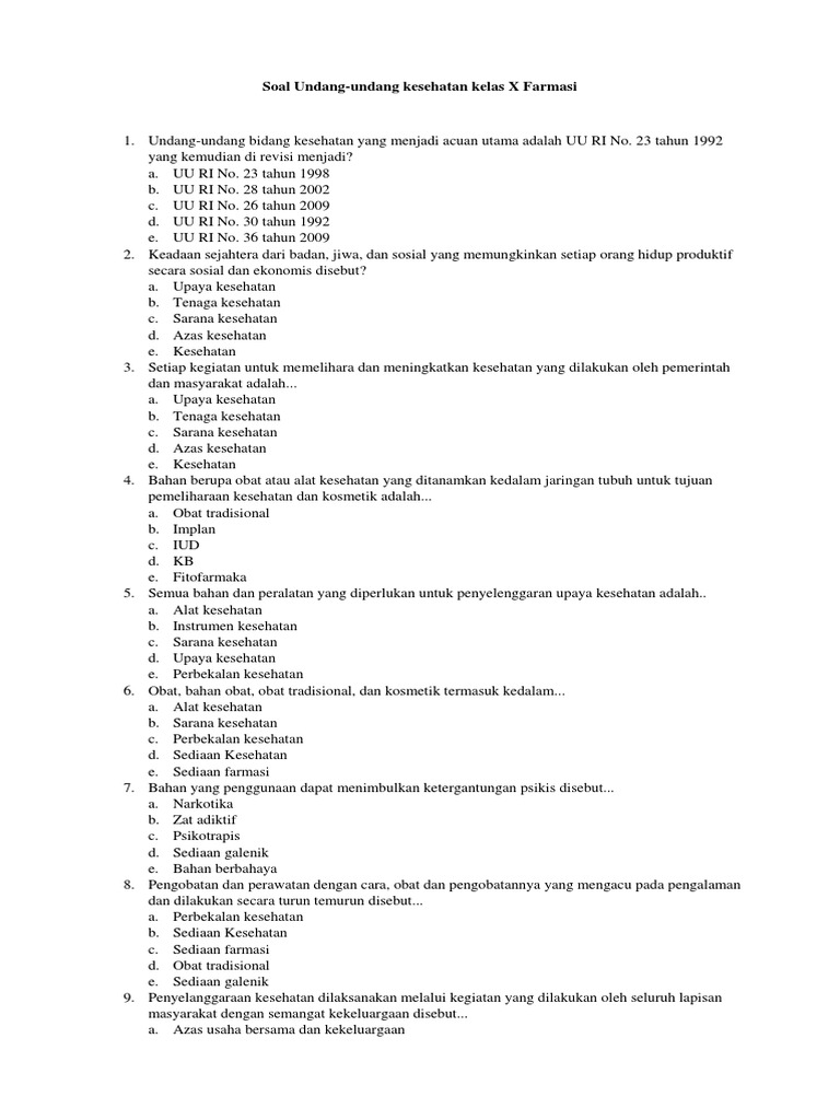 Berikut adalah contoh soal pilihan ganda undang undang kesehatan smk farmasi untuk kelas 10 semester 1 beserta kunci jawabannya. Soal kesehatan masyarakat dan jawaban. Yang merupakan cara pendekatan menggerakkan masyarakat (makro), kecuali. Promosi kesehatan january 2021 0. Temen2 ini materi uas dasar promosi kesehatan masyarakat materi mas besar :